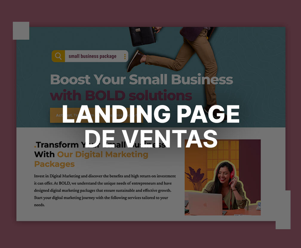 Tuve la responsabilidad de coordinar y dirigir la creación de una landing page dedicada a ofrecer paquetes de servicios para pequeñas empresas. Para este proyecto, creé todo el contenido en español, que luego fue transcrito al inglés por una compañera. La landing page está diseñada para captar la atención de pequeñas empresas y presentarles las soluciones que BOLD ofrece.